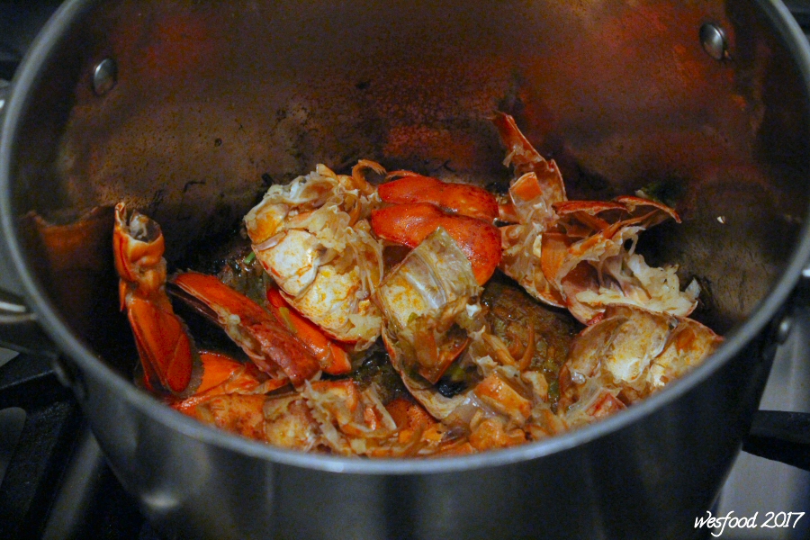 Die Schalen sind deshalb schon rot, weil ich die Hummerschwänze gut drei Minuten gekocht habe. Das steckt aber noch viel Geschmack drin.